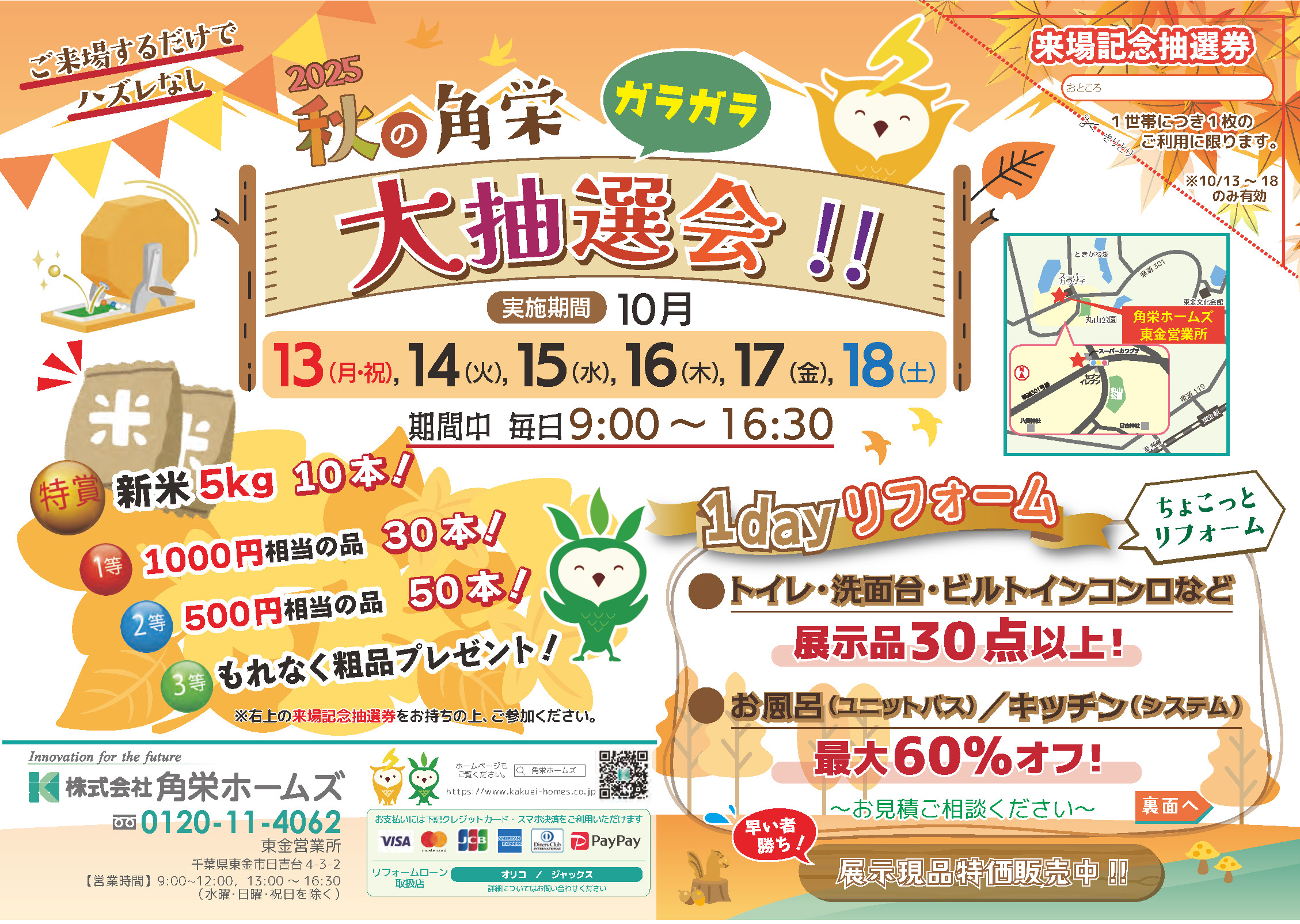 【東金営業所】2025/10/13(月)~18(土)秋の角栄大抽選会を開催します!